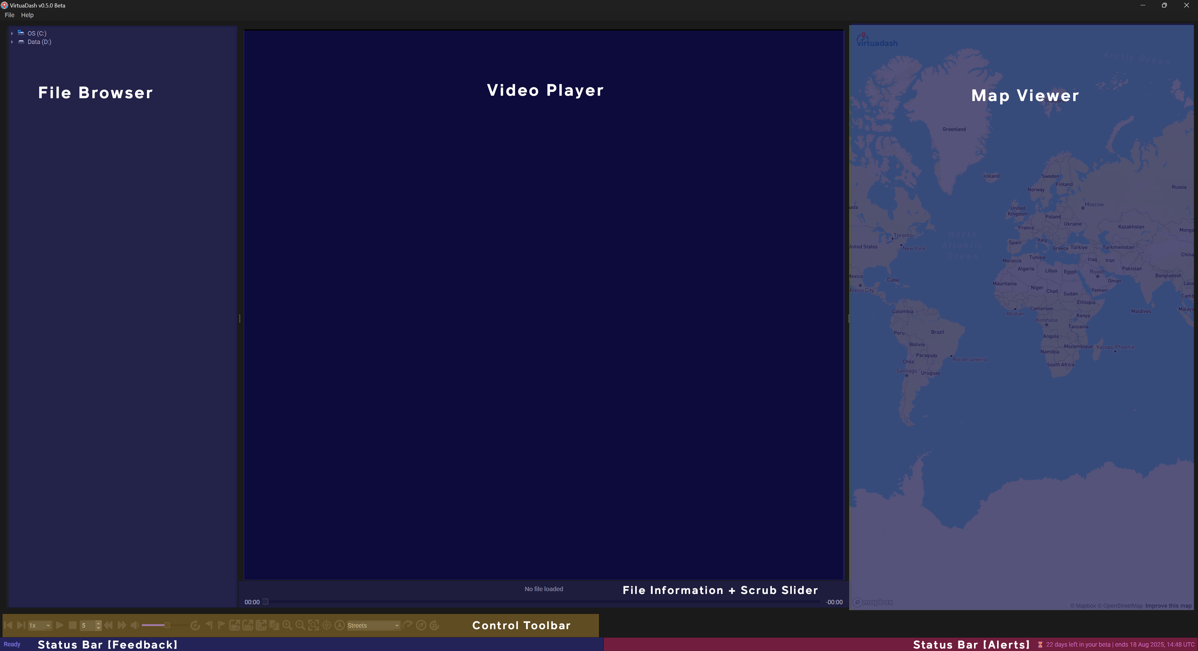 This is where VirtuaDash talks to you and keeps you informed about what's happening! You can double-click this section to open up a window which lists a history of operations done.